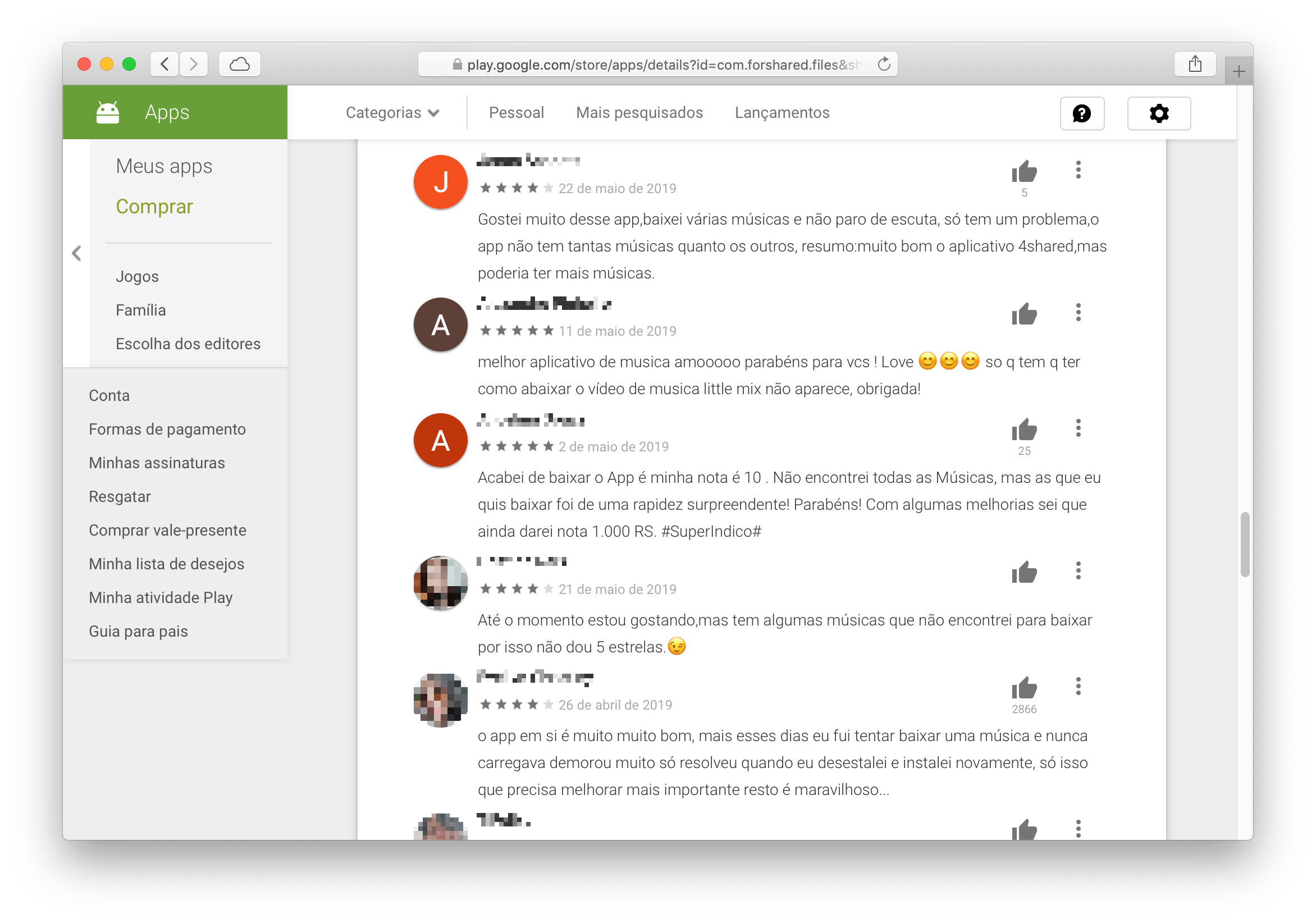 Certos comentários dão a impressão de que seus autores acreditam que o 4Shared é apenas um app de música — nada mais que isso: