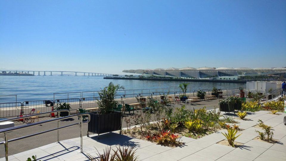 Mas o grande charme é, sem dúvida, a praça principal, com um telão de 7m de altura por 5m de largura, que fica diante de um palco, e com a Baía de Guanabara ao fundo. Para chegar ali, o criador passa por um tubo vermelho, sob bandeiras que representam as cores dos cariocas (que vão do branco ao negro), tudo para lembrar que a região onde o Space está era conhecida como “Pequena África”. Não, nada está ali por acaso.