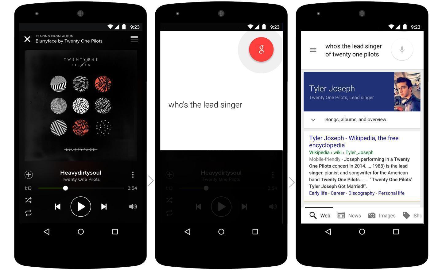No exemplo mostrado no palco da Google I/O, o Now on Tap foi invocado com o Spotify aberto, tocando uma música do Skrillex. Aparna Chennapragada, diretora do Google Now (na foto lá em cima), perguntou: “qual o nome verdadeiro dele?” O sistema entendeu que “ele,” no contexto, se referia ao Skrillex e, em seguida, devolveu o nome real do músico. No meio do caminho, o Google descobriu que você usa o Spotify, ouve música naquele período do dia, curte dubstep e talvez seja fã do Skrillex. Isso, e sabe-se lá mais o quê. Por quê? Para dar respostas mais precisas e personalizadas no futuro
