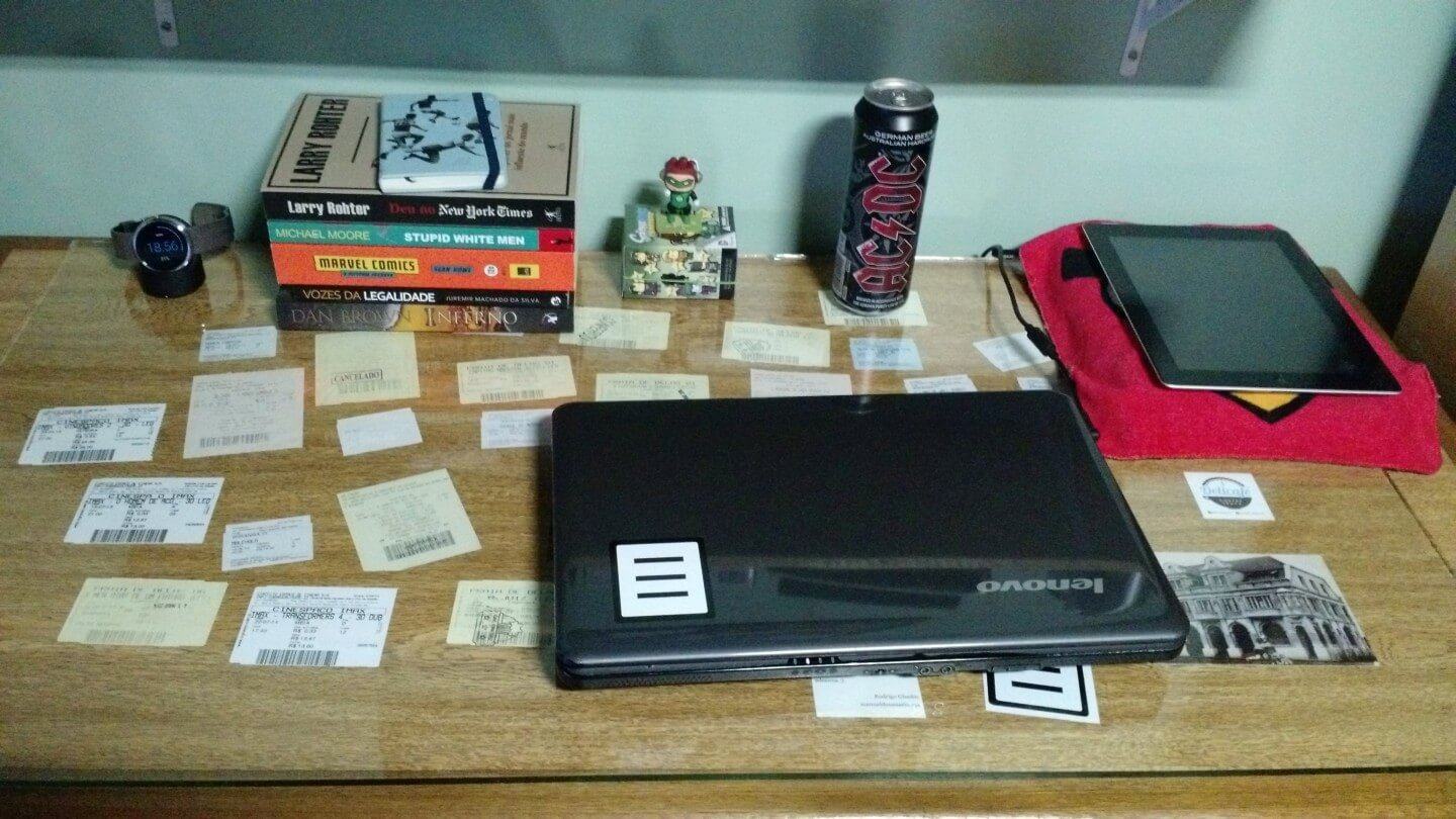 - Descrição dos itens. O que tem na mesa, por que essas coisas estão nela, o que é legal/se destaca na sua… enfim, explique-a para nós. Em texto corrido, com no máximo 250 palavras. (Use o Word ou Google Docs para não estourar esse limite.)