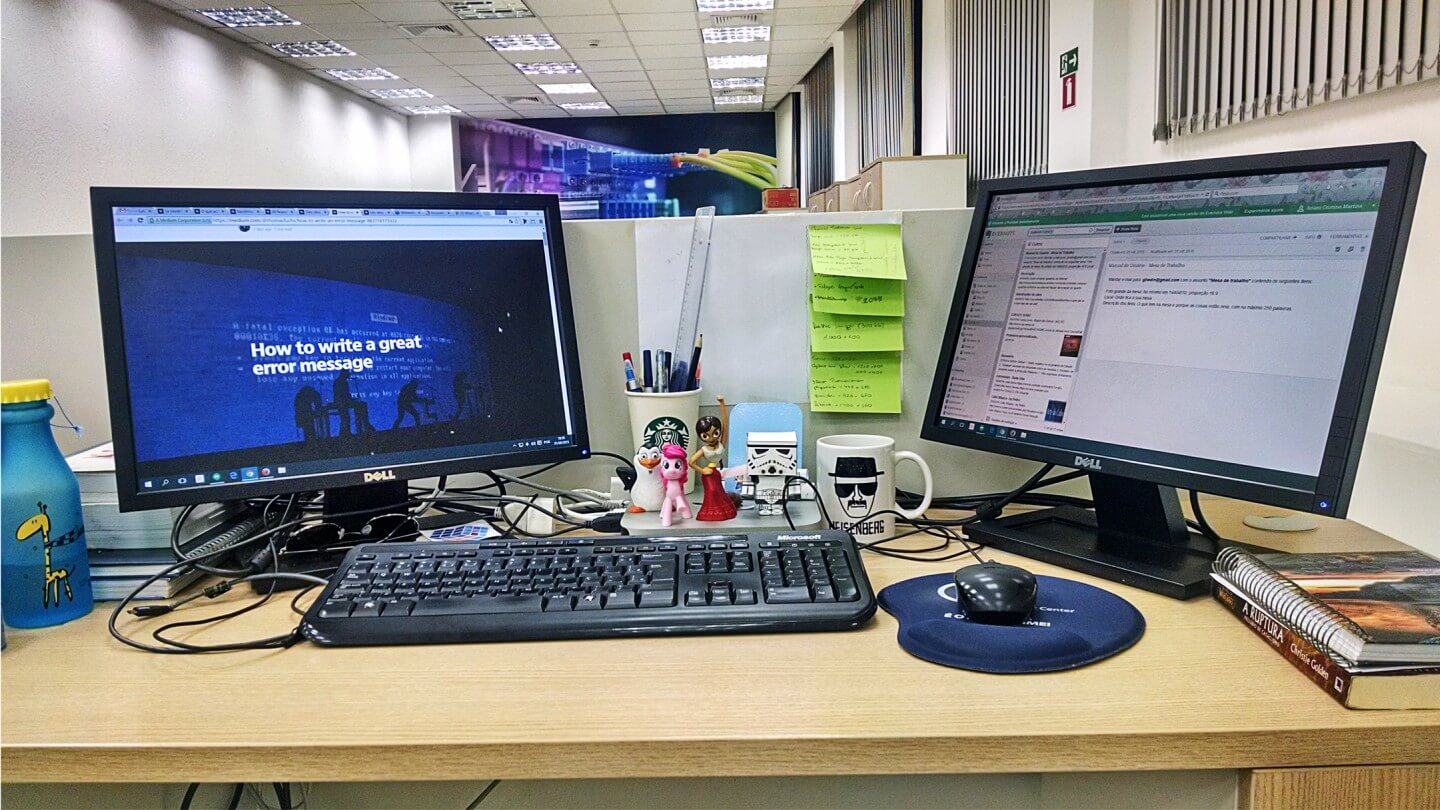 - Local. Onde fica a sua mesa, em casa ou na empresa/escritório? (Se for no seu local de trabalho, por favor, verifique com seu chefe antes se não tem problema. A última coisa que eu quero é causar a demissão de um leitor :P )