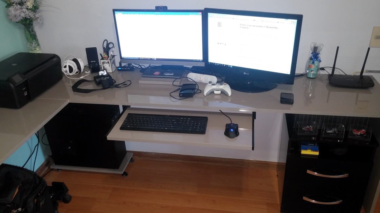 Inveja dessa mesa em L. Também tenho uma, mas é aquela dividida em três partes em que o joelho fica batendo toda hora nas divisórias ¬¬