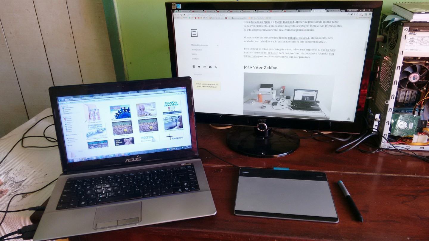 É um setup bem simples, mas que atende meu trabalho de programação e de edição de imagens.