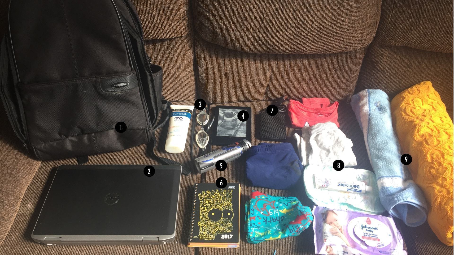- Fralda e roupinhas. São para meu filho mais novo. Sempre que estou com ele carrego uma troca de roupa, uma fralda e uma pomada. Costumo ficar com os dois após o trabalho.