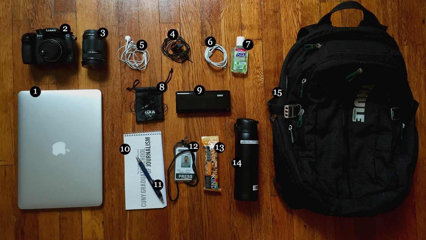 “Tenho tentado diminuir o peso da minha mochila, e nem sempre tenho sucesso. Mas esses são os itens que mais vezes apareceram nela nos últimos meses.”
