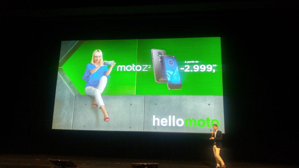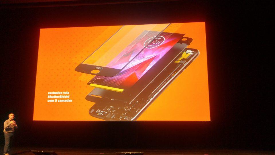 Apesar de ser um dos aparelhos mais diferentes da marca e do mercado, e que eu particularmente gosto, o Moto Z2 Force mereceu espaço no palco, mas não no comunicado de imprensa. Hum, curioso. Com tela de 5,5 polegadas e resolução QuadHD, o Moto Z2 Force se destaca pela tecnologia ShatterShield que deixa a tela mais resistente a quedas. Além disso, ele faz parte da lista de aparelhos que pode receber módulos, os Snaps, inclusive o GamePad que foi anunciado em Barcelona, na Espanha, mas só agora foi visto no Brasil.