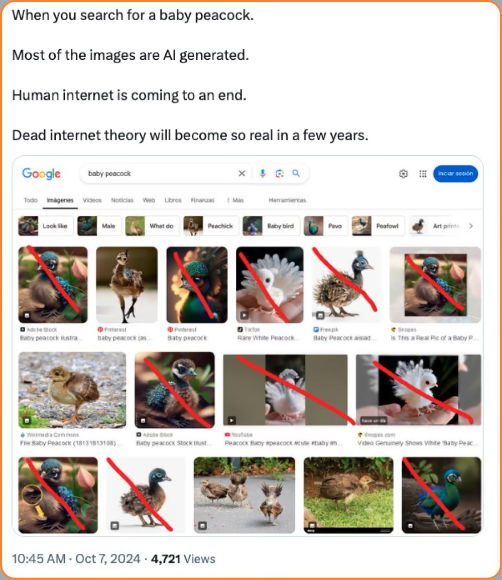 Li nessa edição dessa newsletter The Neuron (https://www.theneurondaily.com/p/canvas-ui-shakes-up-chatgpt). Os links dão todos para o x, mas já é um problema bem perceptível para mim também. Pinterest, outra praga da internet já deve estar nos 90% IA também.