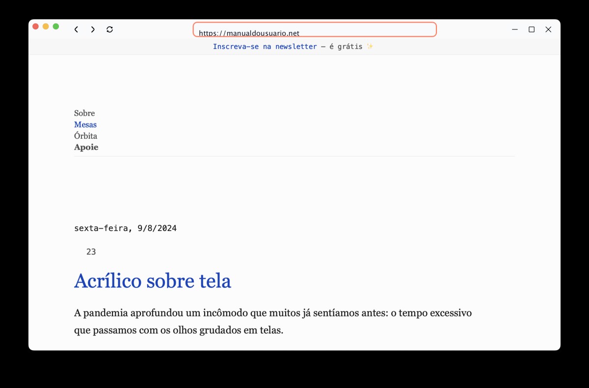 Lembram do Servo, motor que a Mozilla criou e que, hoje, é mantido pela Fundação Linux? Topei com este navegador experimental que adota o Servo. Ainda é bem bugado, lento e instável (e não consegue renderizar imagens em *.svg, como se nota pelo print do Manual).