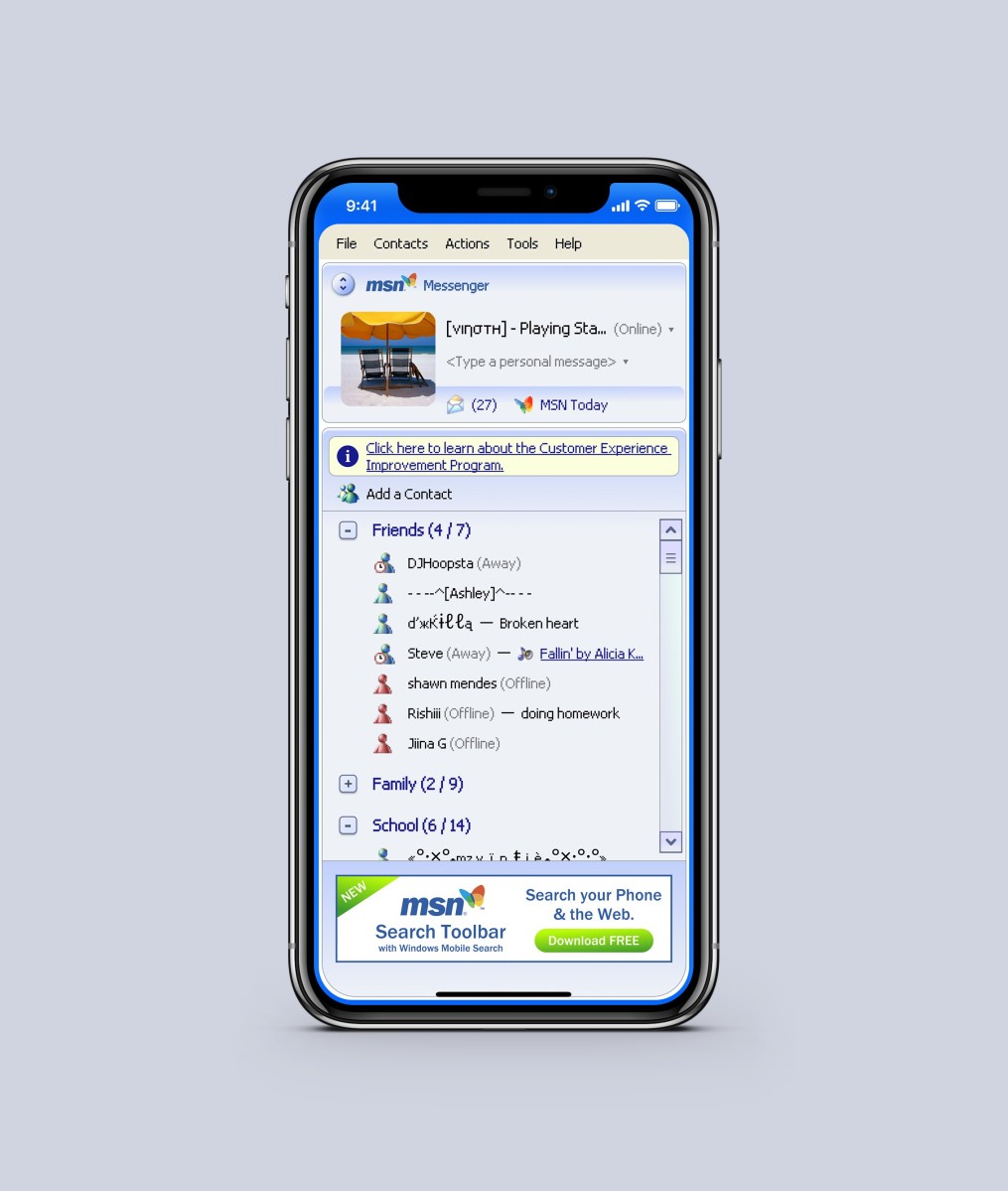 Nostalgia do ritual de “ligar o PC pra tc com a galera”. Não sei como é com os adolescentes de hoje, mas é meio louco pensar que os messengers começaram a perder o sentido justamente na migração dos desktops pros smartphones e da conexão 100% do tempo, ainda que tentassem migrar. O que o whatsapp fez que nenhum outro antes fez? É questão da interface? Lembro de ter usado o MSN em um Windows phone péssimo que eu tinha em 2010. Era muito pior que esse mockup haha.