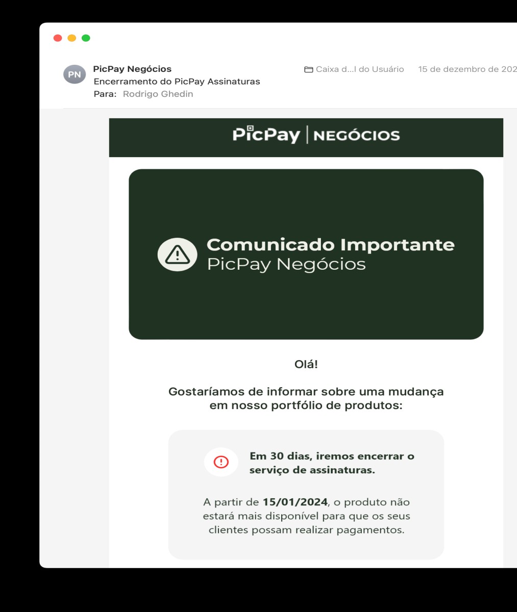 Uma rápida análise: o fim do serviço não surpreende. Na verdade, surpreende que tenha durado tanto sem alterações. O PicPay Assinaturas cobrava uma taxa de apenas 1,99%; é baixíssima comparada a outros players. (Catarse cobra 13%; Stripe, na média do Manual, ~9%.)