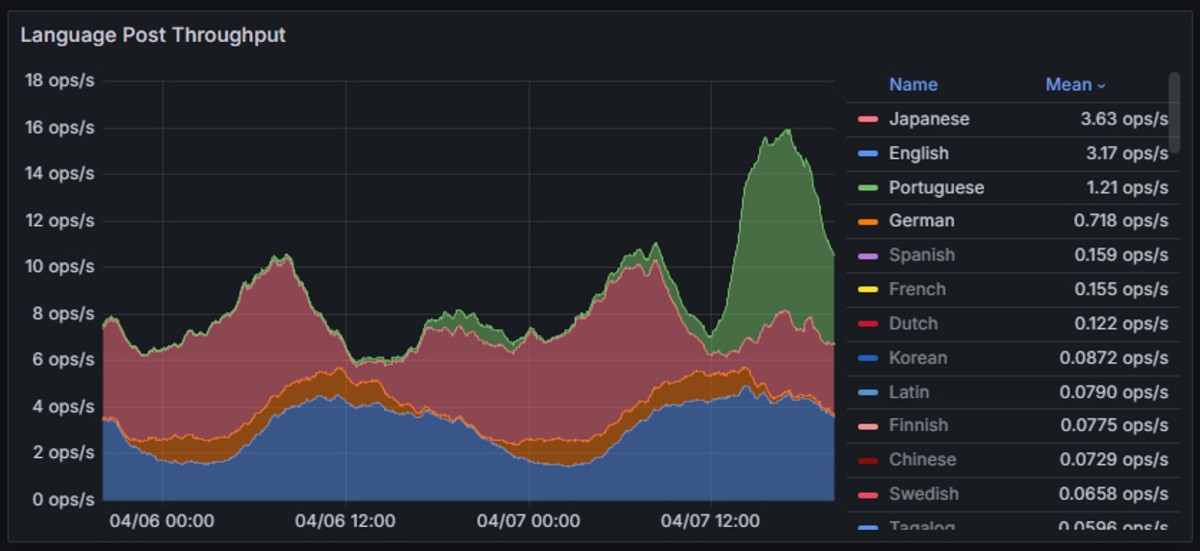 Hahaha! Pior que o fediverso tem alguns agregadores de estatísticas, como o FediDB, mas não encontrei um que faça o recorte por idioma das postagens.