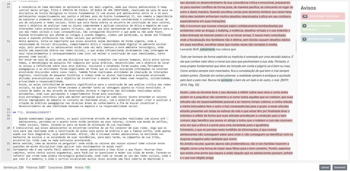 De forma básica e resumida: você pode carregar um arquivo do seu computador (em md ou txt, por enquanto) e o editor vai, além de permitir que você edite de fato, dar instruções de possíveis melhorias no texto (frases longas, palavras complexas, jargões, adjetivos entre outras coisas que devemos evitar em textos, principalmente técnicos).