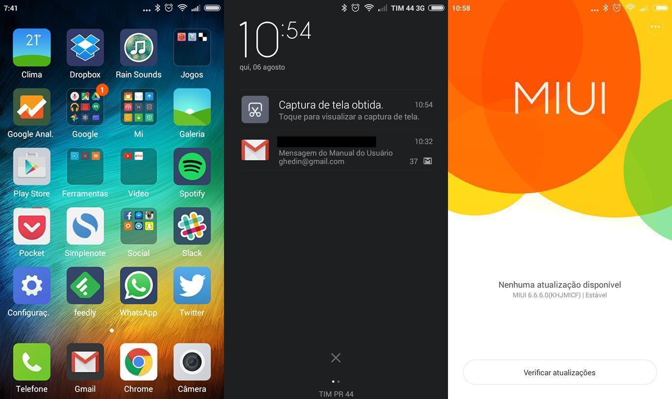 A boa impressão se mantém na tela. Ela tem revestimento Dragontail e as já mencionadas 4,7 polegadas com resolução HD (1280×720), o que lhe confere uma densidade de 312 PPI. Fica acima do que considero o mínimo viável para telas de celular, 300 PPI, e na prática é uma tela bastante agradável aos olhos. As cores são vibrantes, o brilho, muito bom e, no geral, é difícil encontrar pontos a serem criticados. A MIUI permite, inclusive, mexer nas cores (mais quentes ou mais frias) e aumentar a saturação. Para mim, porém, a configuração original é a melhor.